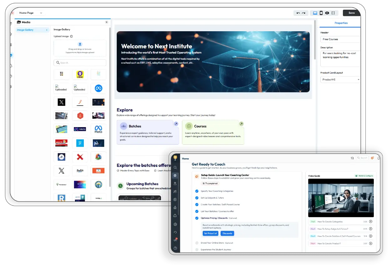 Fuel an impressive online presence for your institute with a customisable no-code website and mobile app — specifically branded in your coaching institute’s name, colours, and logo.