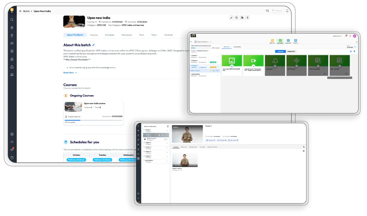 With our 7-step course builder, you can create courses, organize chapters, assign teachers, and manage student batches effortlessly.